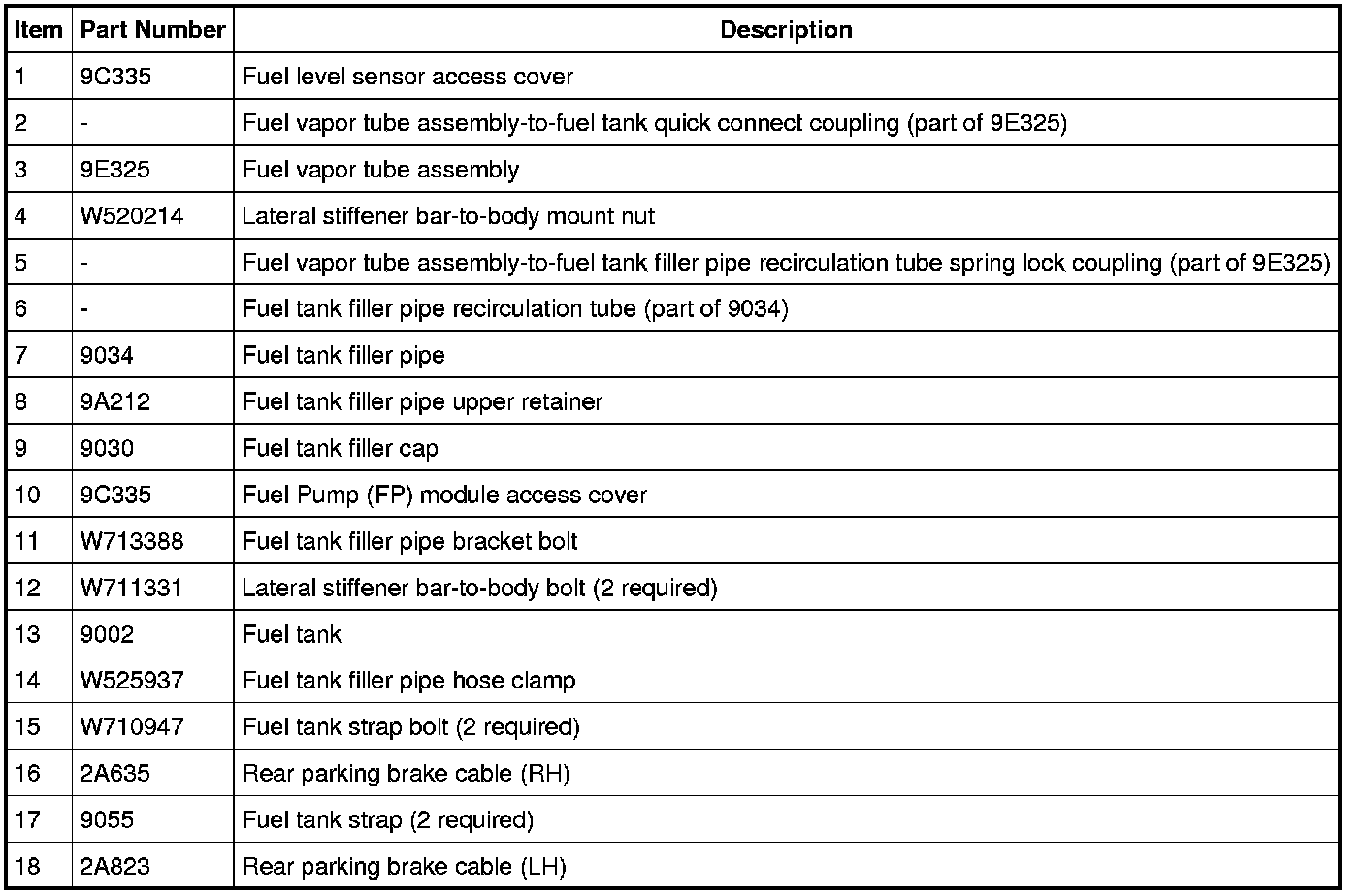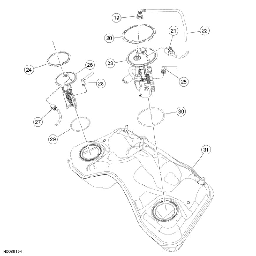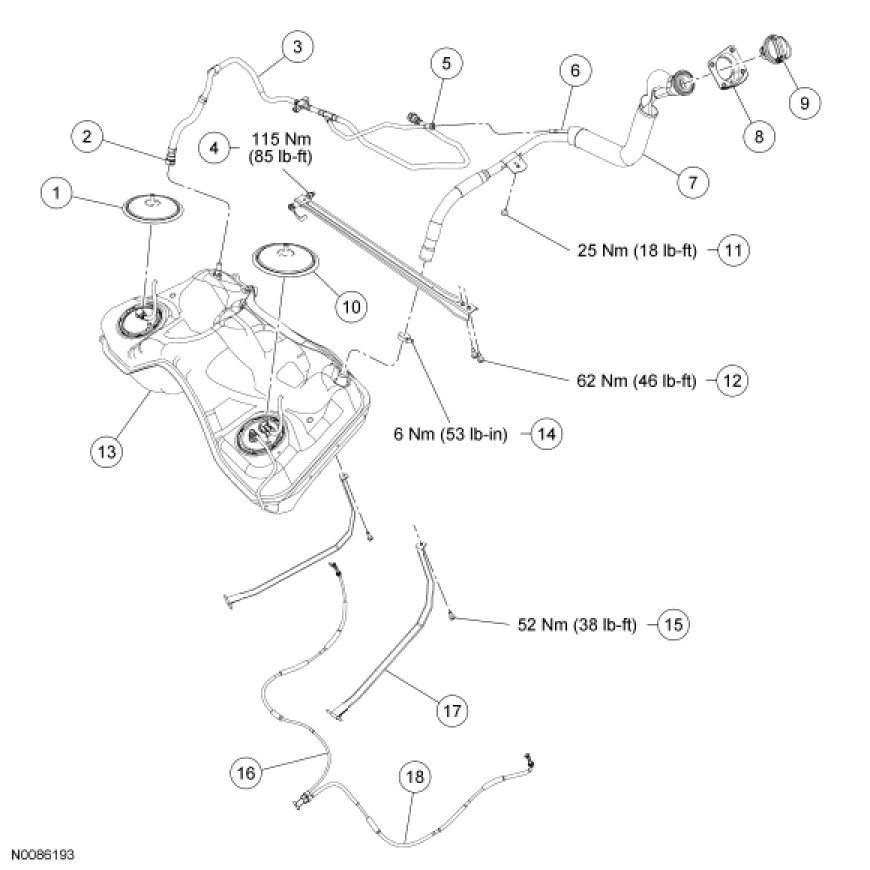 Fuel Tank and Filler Pipe - Exploded View