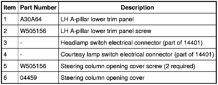 8. Connect the headlamp and courtesy light switches electrical connectors and install the steering column opening cover and 2 screws.