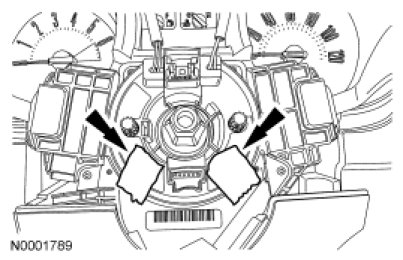 10. NOTE: When the tape is removed, do not allow the clockspring to turn.