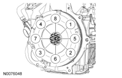 . Install the 8 new bolts and tighten in the sequence shown in 3 stages.