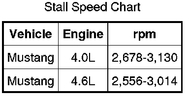 2. Press the accelerator pedal to the floor WOT in each range. Record rpm reached in each range. Stall speeds should be as follows: