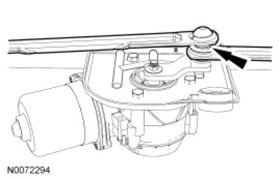 2. NOTE: Do not remove the wiper motor linkage arm from the wiper motor assembly. If the arm is removed, the wiper arms may not park in the correct location.