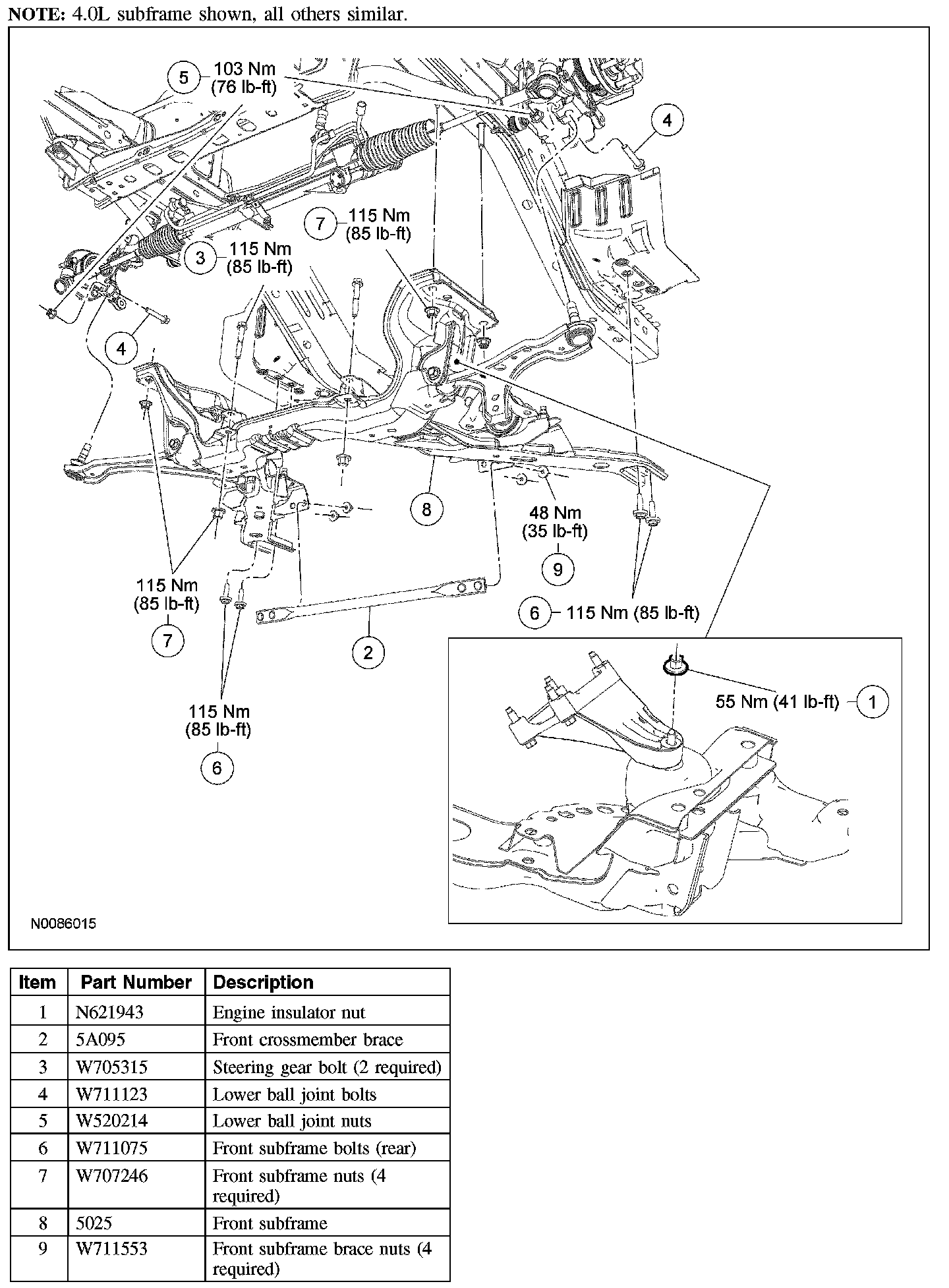 Subframe and Components - Exploded View, Front: