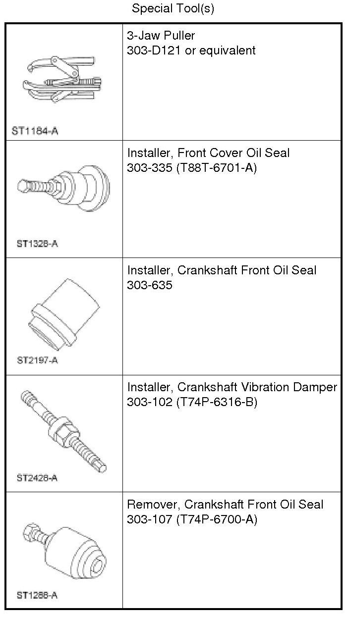 6. Using the Crankshaft Vibration Damper Installer, Crankshaft Front Oil Seal Installer and the Front Cover Oil Seal Installer, install the crankshaft front oil seal.