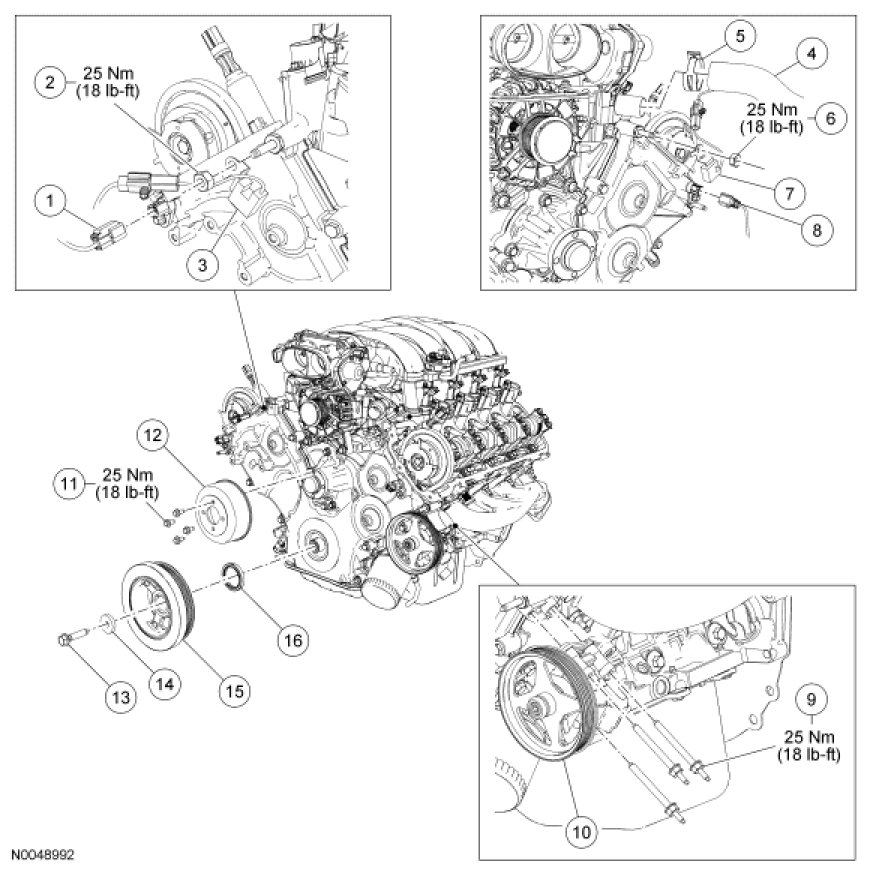 - Tighten to 25 Nm (18 lb-ft).