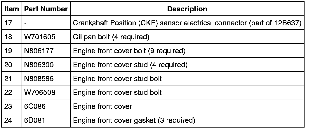 3. Tighten the engine front cover fasteners in the sequence shown to 25 Nm (18 lb-ft).