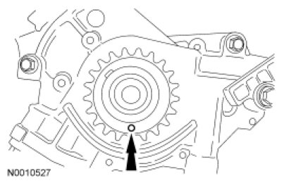 NOTE: The RH and LH camshaft phaser sprockets are similar. Refer to the single timing mark to identify the RH camshaft phaser sprocket and the L timing mark to identify the LH camshaft phaser sprocket.