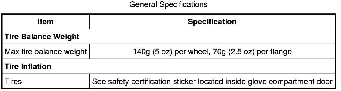 Inflate the tire to the pressure specified on the safety certification sticker located on the driver door or door pillar.