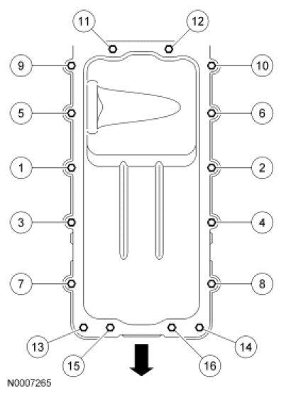 Tighten the 16 bolts in 3 stages, in the sequence shown.