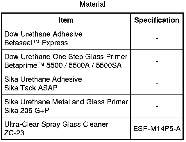 7. NOTE: Be sure to use the same brand and cure-rate products for the urethane adhesive and glass primer. Do not mix different brands of urethane adhesive and glass primer. Refer to the Material Chart in the procedure.