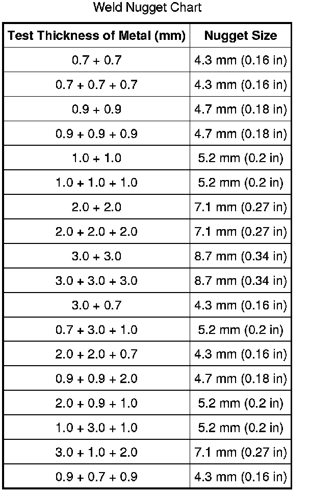 Welding Nugget Chart