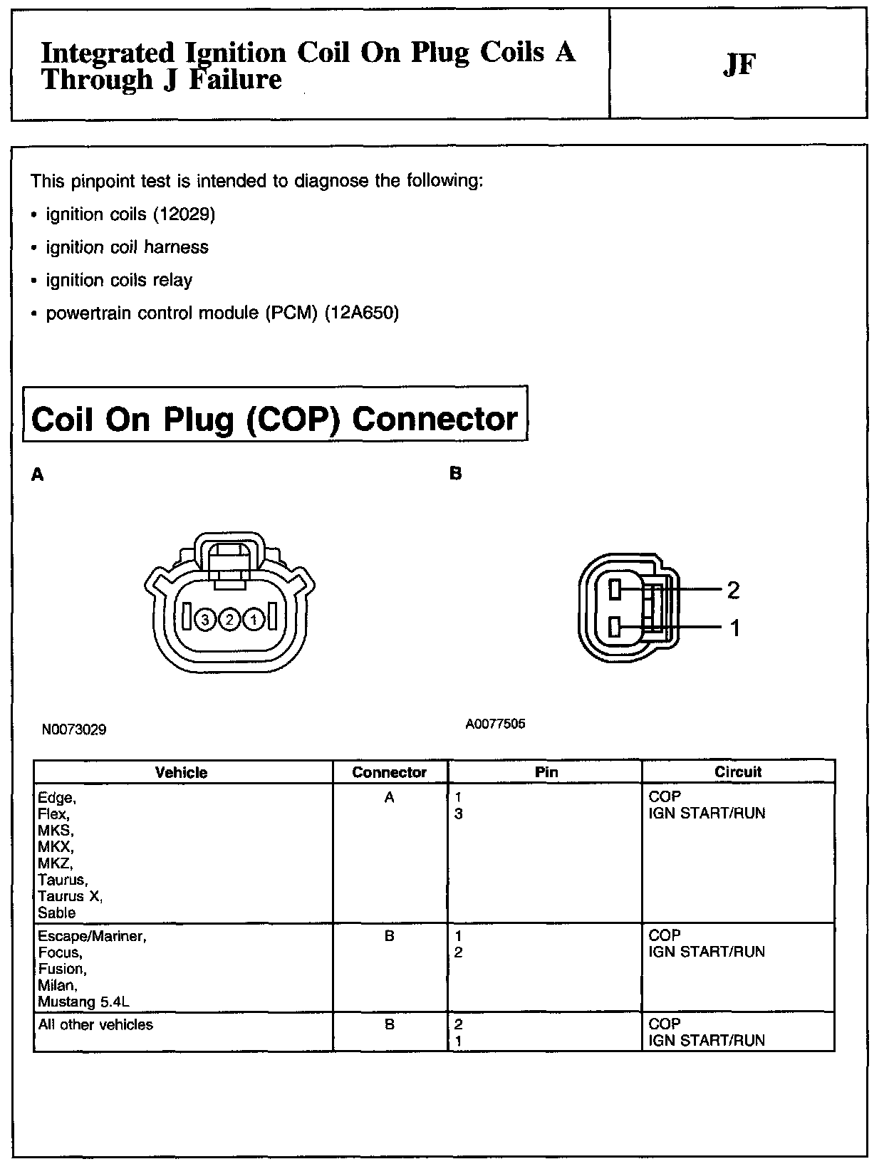 PINPOINT TEST JF: INTEGRATED IGNITION COIL ON PLUG COIL A THROUGH J FAILURECoil On Plug Connector: