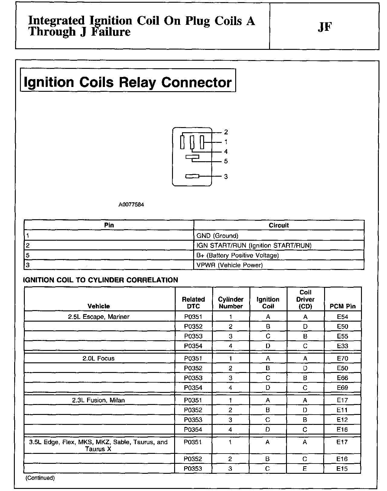 Ignition Coils Relay Connector And Ignition To Cylinder Correlation: