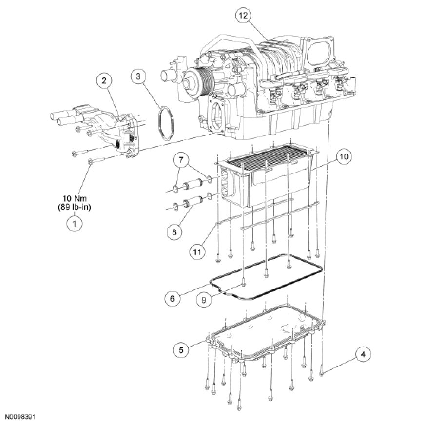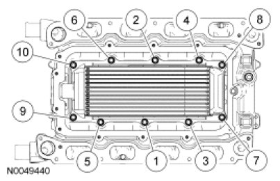 - Tighten the bolts in the sequence shown to 10 Nm (89 lb-in).