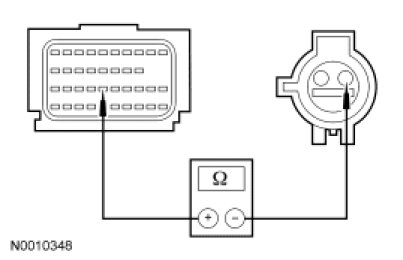 - Measure the resistance between RCM C2041b-26, circuit 1514 (RD/BK), harness side and passenger safety belt buckle switch C3066-2, circuit 1514 (RD/BK), harness side.