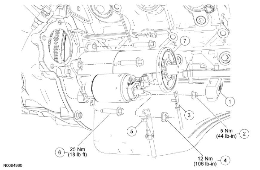 - Tighten the starter solenoid B+ terminal nut to 12 Nm (106 lb-in).