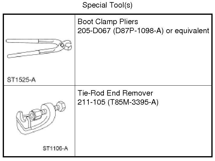 NOTICE: The steering gear bellows boots and clamps are designed to provide an airtight seal and protect the internal components of the steering gear. If the seal is not airtight, the vacuum generated during turning will draw water and foreign material into the gear causing damage. Zip ties do not produce an airtight seal and must not be used.