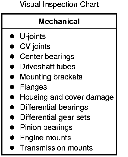 4. If the cause is not visually evident, verify the symptom and GO to Symptom Chart - Driveline or GO to Symptom Chart - NVH. Symptom Chart - Driveline Symptom Chart - NVH