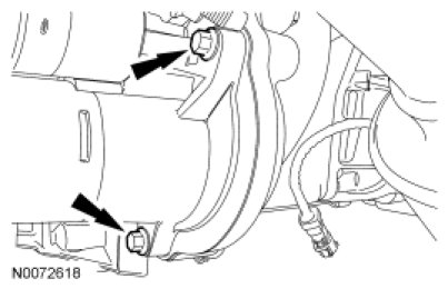 11. Remove the 8 transmission-to-engine bolts and the separator plate bolt.