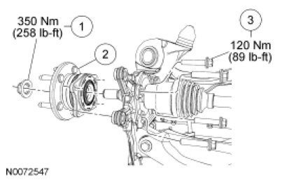 - To install, tighten the new nut to 350 Nm (258 lb-ft).