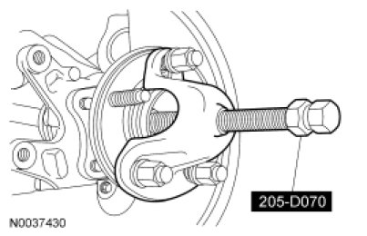 5. Using the Front Wheel Hub Remover, press the axle shaft out of the hub.