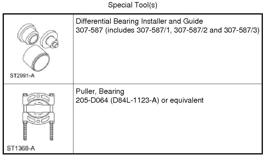 2. Using the Differential Bearing Installer and Guide 307-587 (307-587/2 and 307-587/3) and a press, install new transfer shaft bearings on the transfer shaft assembly.