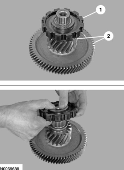 1. Install the park pawl wheel on the transfer shaft.