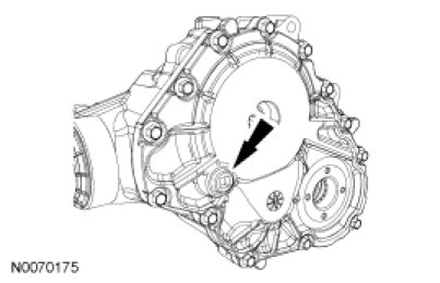 4. With the vehicle on a flat, level surface, fill the PTU with lubricant. The fluid must be even with the bottom of the fill opening.