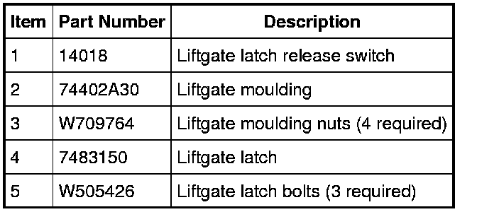 Liftgate Handle, Lock and Latch - Exploded View