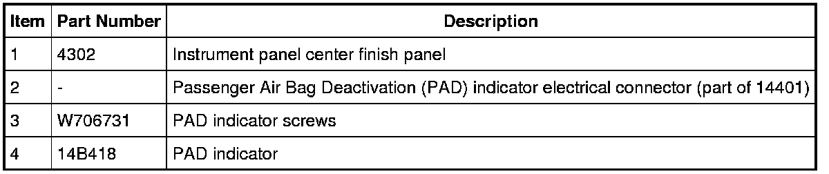 3. Disconnect the Passenger Air Bag Deactivation (PAD) indicator electrical connector.