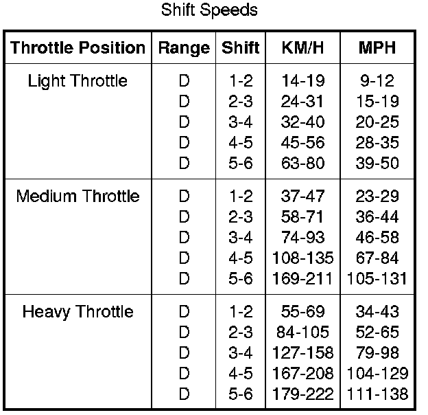 3. NOTE: Shift speed ranges are approximate for all applications. For specific applications (engine, axle ratio and application) refer to the Automatic Transmission Specification Issue available from Ford Customer Service Division.