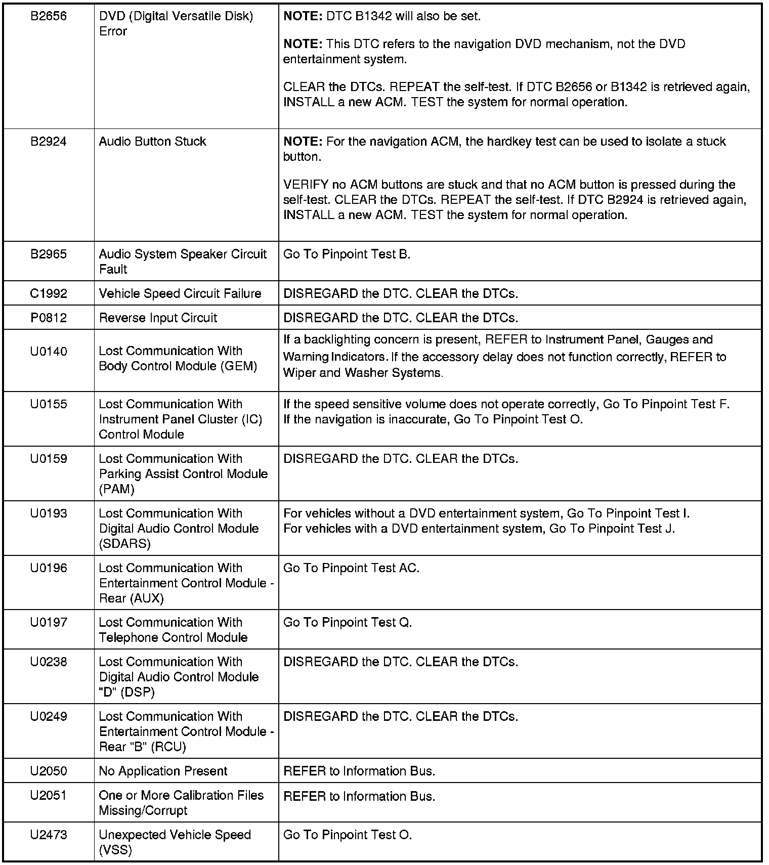B2656-B2965 / C1992 / P0812 / U0140-U2473: