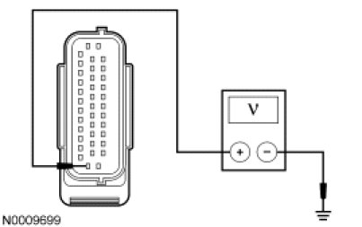 - Measure the voltage between ABS module C135-25, circuit SBB12 (GN/RD), harness side and ground.