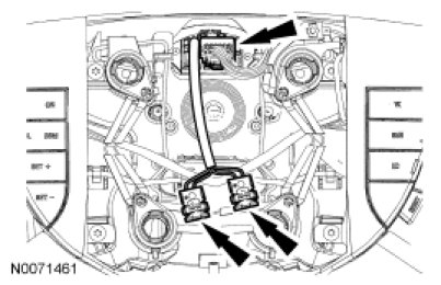 - Disconnect the steering wheel switches electrical connector from the clockspring.