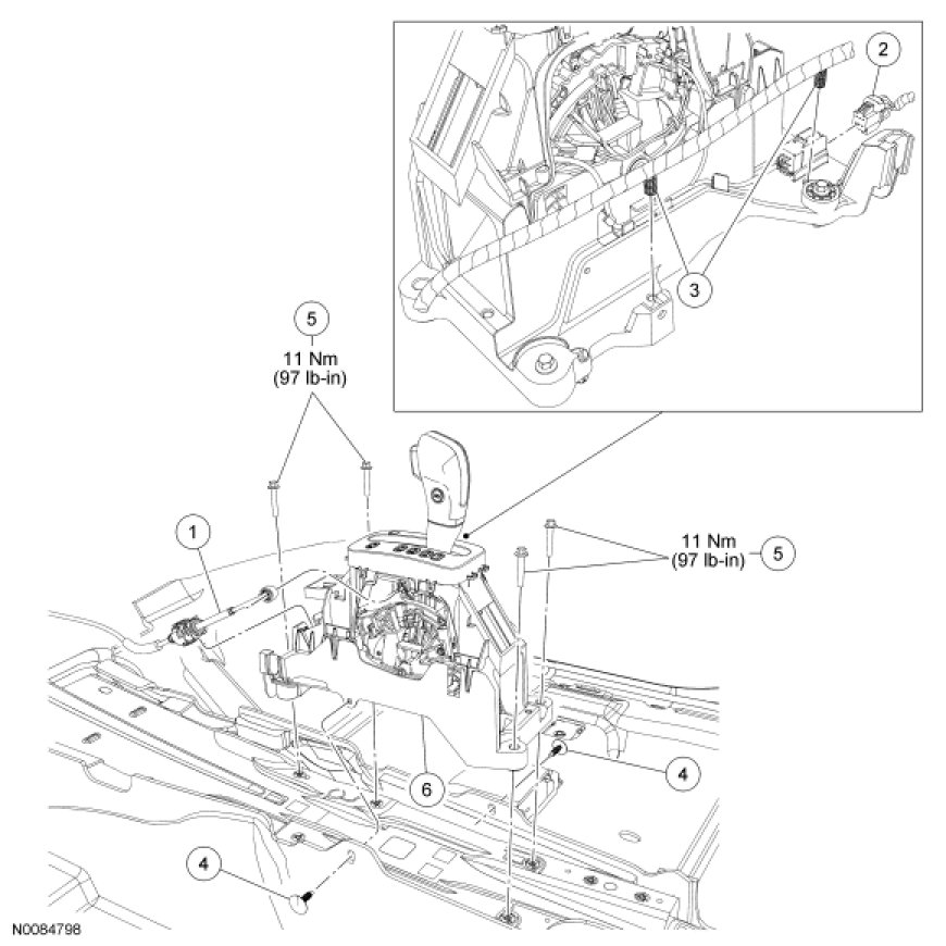 7. Remove the 4 selector lever bolts and the selector lever from the vehicle.