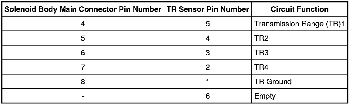 Solenoid Body-to-Transmission Range (TR) Sensor Internal Circuit Diagram