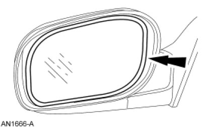 1. Push in the upper edge of the exterior mirror glass to the maximum travel.