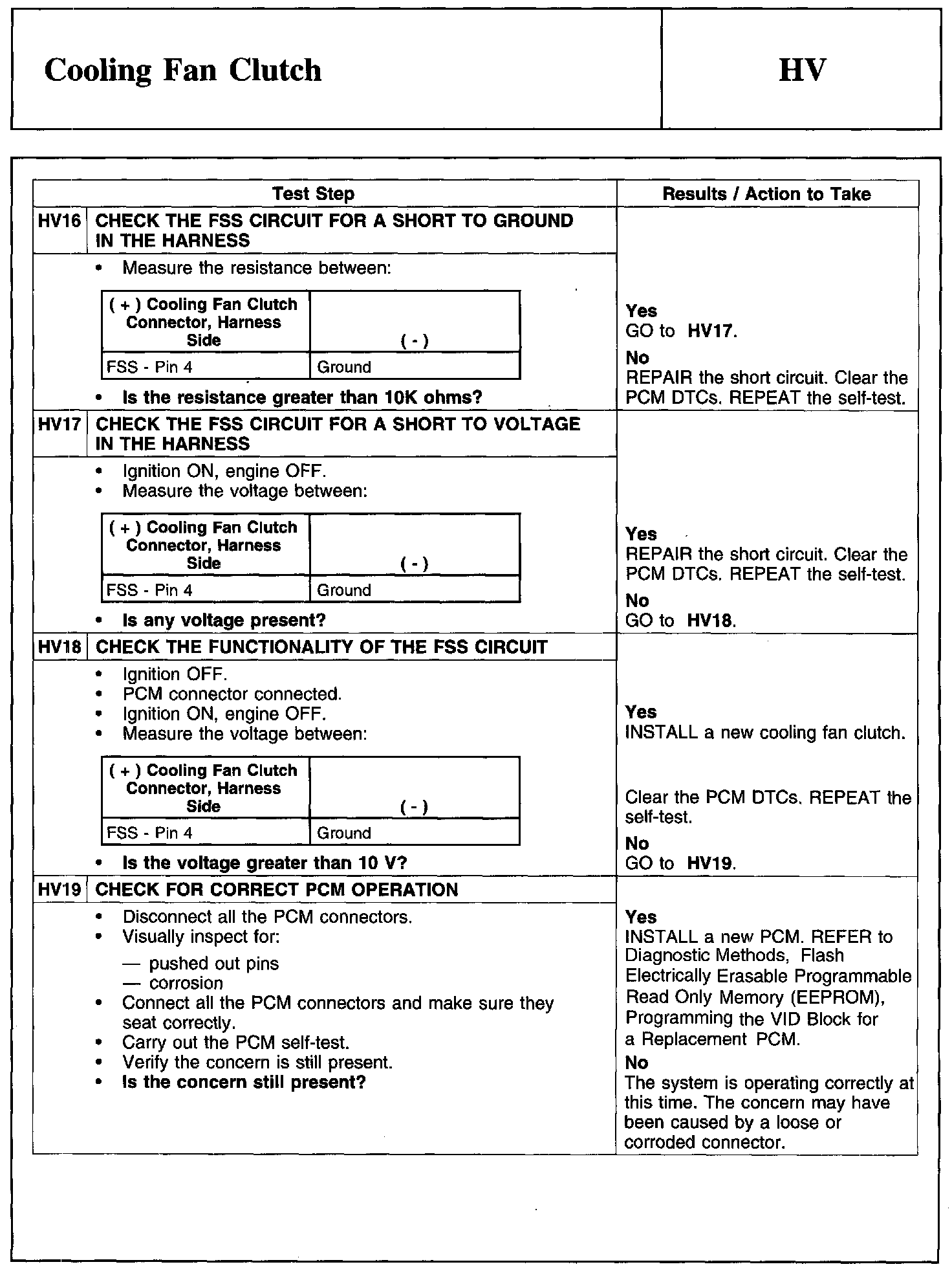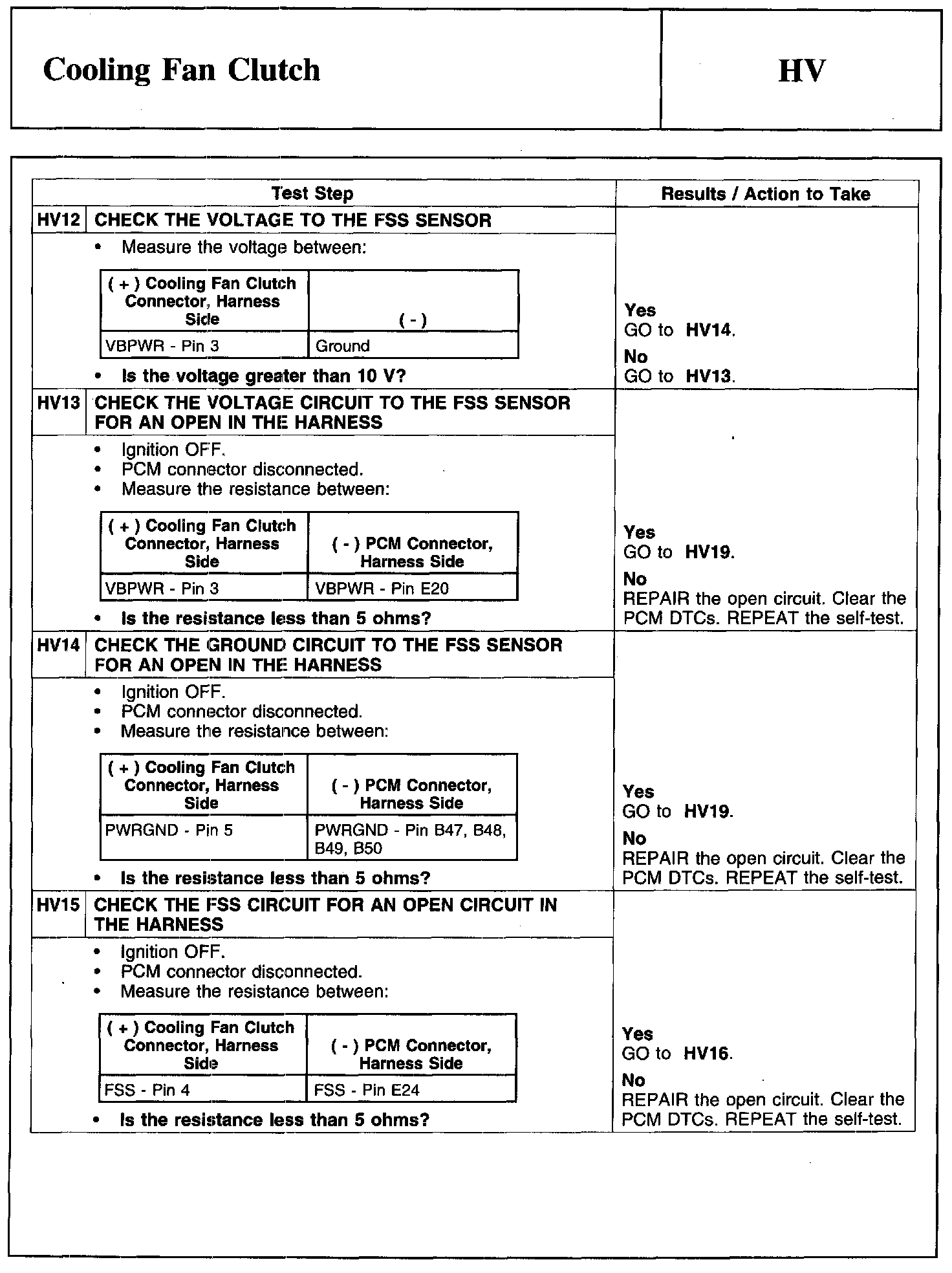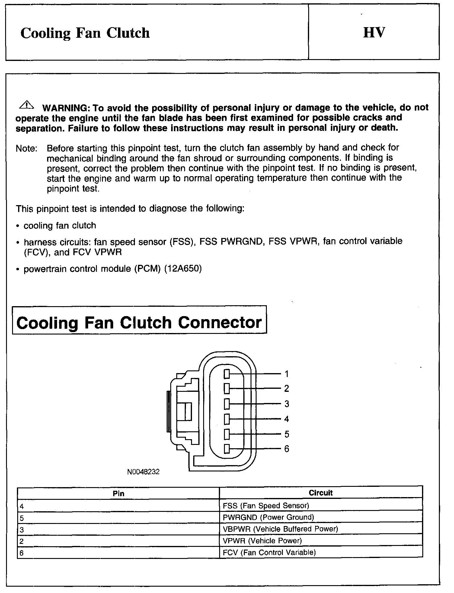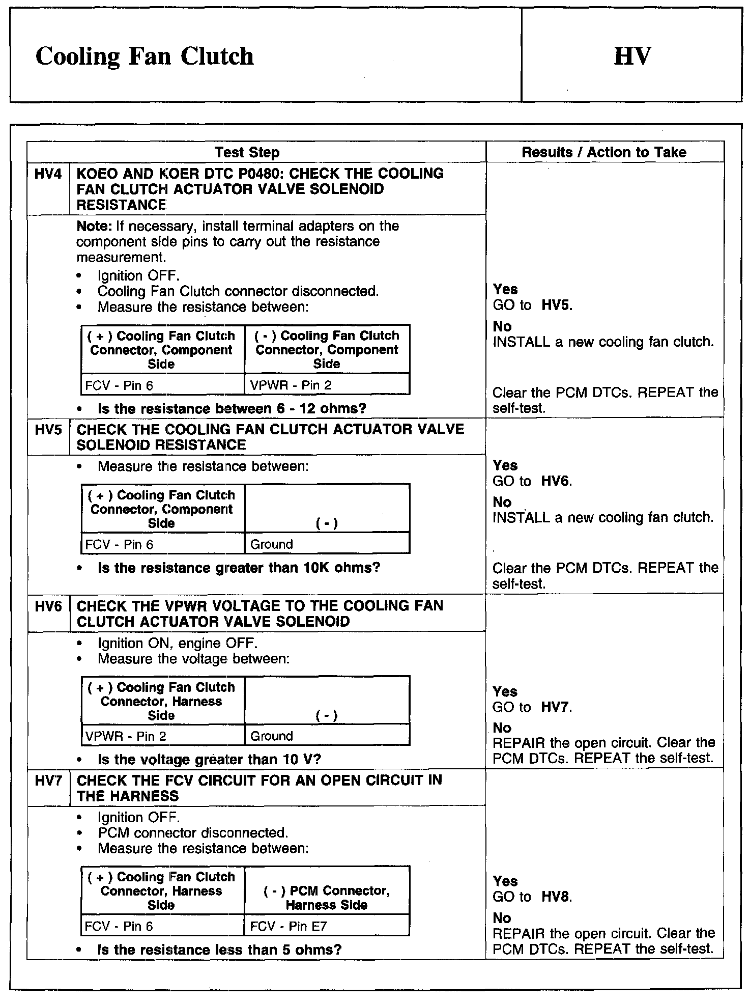 PINPOINT TEST HV: COOLING FAN CLUTCH