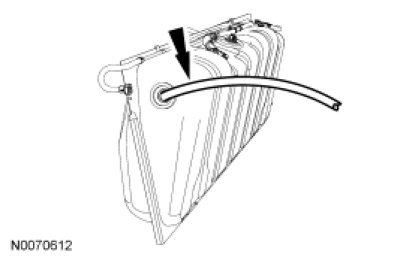 1. Remove the fuel tank filler pipe. For additional information, refer to Fuel Delivery and Air Induction.