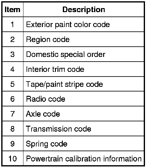 NOTE: Powertrain calibration information is limited to a maximum of 5 characters per line on the Vehicle Certification (VC) label. Calibration identification consisting of more than 5 characters will wrap to the second line on the VC label.