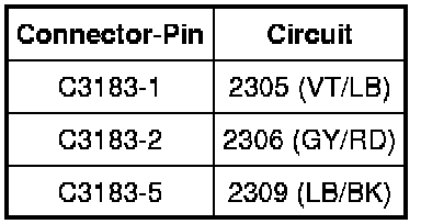 - Measure the voltage between the TPMS/RKE antenna C3183-4, circuit 2308 (RD/WH), harness side and the TPMS/RKE antenna C3183-3, circuit 2307 (BK/WH), harness side.