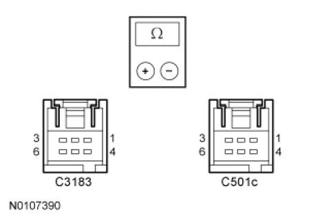 - Measure the resistance between the TPMS/RKE antenna C3183-3, circuit 2307 (BK/WH), harness side and the DDM C501c-3, circuit 2307 (BK/WH), harness side.