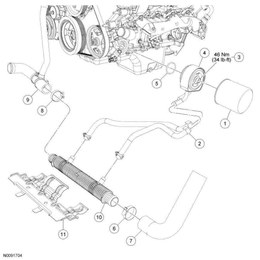 - To install, tighten to 46 Nm (34 lb-ft).