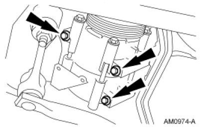 37. Remove the 3 bolts and position the A/C compressor aside.