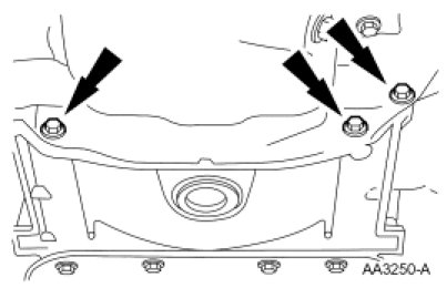 54. Remove the 4 bolts and 1 stud (2 bolts shown).