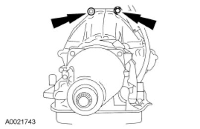 47. Raise the transmission and remove the rear transmission insulator bolts.