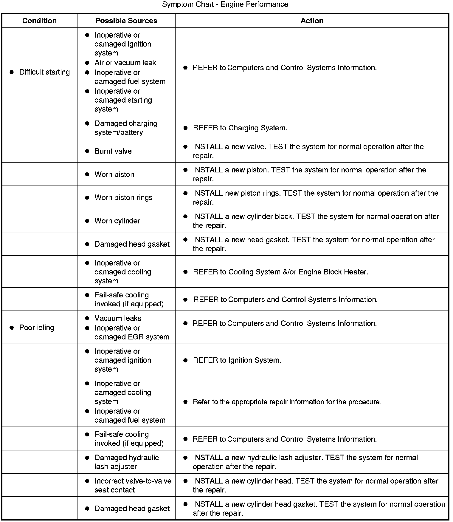 Symptom Chart - Engine Performance