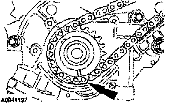 Rotate the RH camshaft sprocket until the timing mark is approximately at the 11 o'clock position. Rotate the LH camshaft sprocket until the timing mark is approximately at the 1 o'clock position.