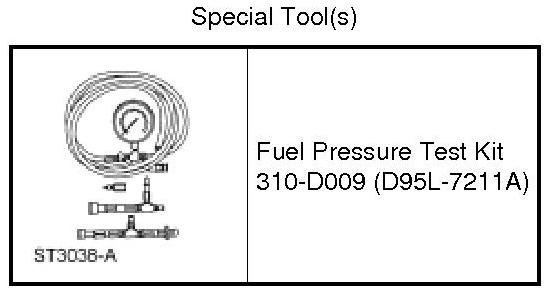 Test the fuel system pressure to make sure it is within the specified range. For additional information, refer to Specifications.