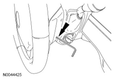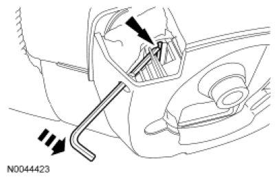 Using a 4 mm (0.15 in) Allen wrench or suitable tool, place 2 marks on the tool as an aid to remove the driver air bag module. One mark should be approximately 35 mm (1.37 in) from the end of the tool with the second mark approximately 45 mm (1.77 in) from the end of the tool.